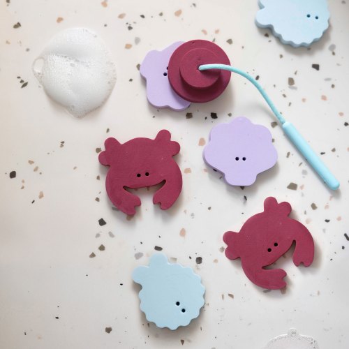Vanaf 10 maanden spelen kinderen met drijvende schuimblokjes die aan de badkuipmuren blijven plakken. Op 18 maanden vissen ze met de meegeleverde hengel – geen magneten nodig! Deze vormen blijven drijven op het water, wat de verbeelding stimuleert en de coördinatie verbetert.